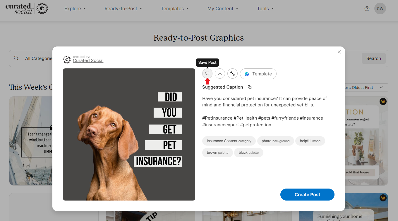Save your favorite ready-to-post graphic to schedule later! Here's how to use "My Saved Posts".